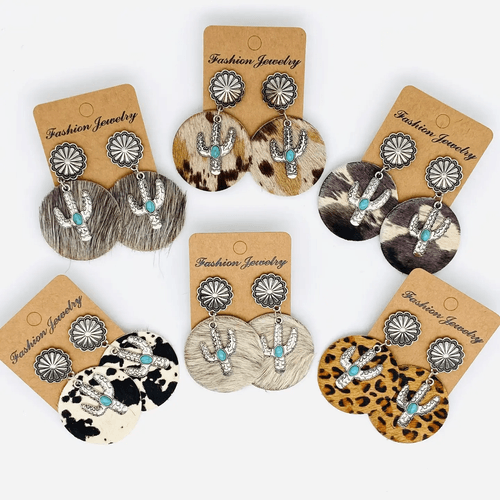 $9.50Western Style Cactus Animal Skin Double Charm Earrings are a trendy accessory that combines the elements of cacti and animal skin patterns.