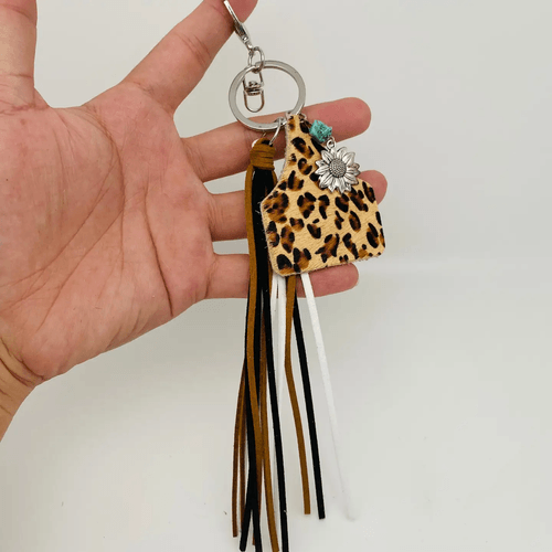 Western Style Geometric Cowhide Keychain-Leopard