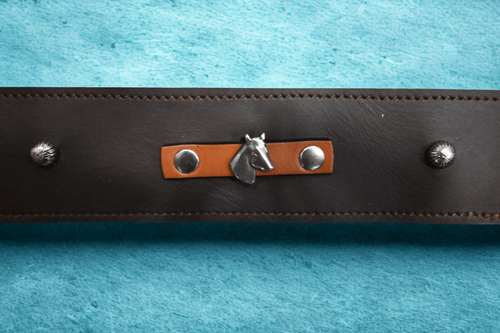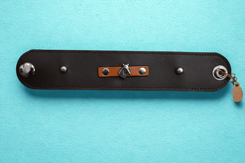 Dark brown leather bracelet with horse head